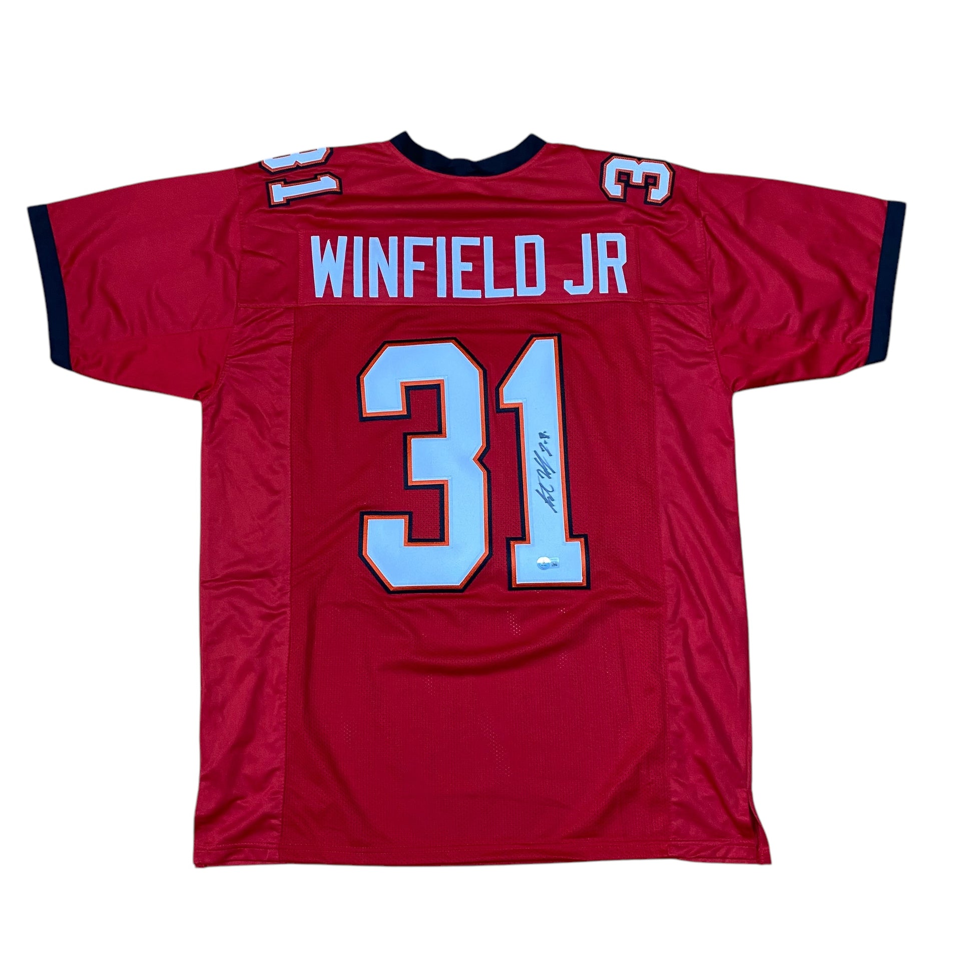 Elevate your fan gear with this red #31 stitched jersey signed by all pro defensive back Antoine Winfield Jr. Certified by Beckett, this jersey is a must-have for any die-hard Buccaneers fan. Show your support and add a touch of flare to your collection.