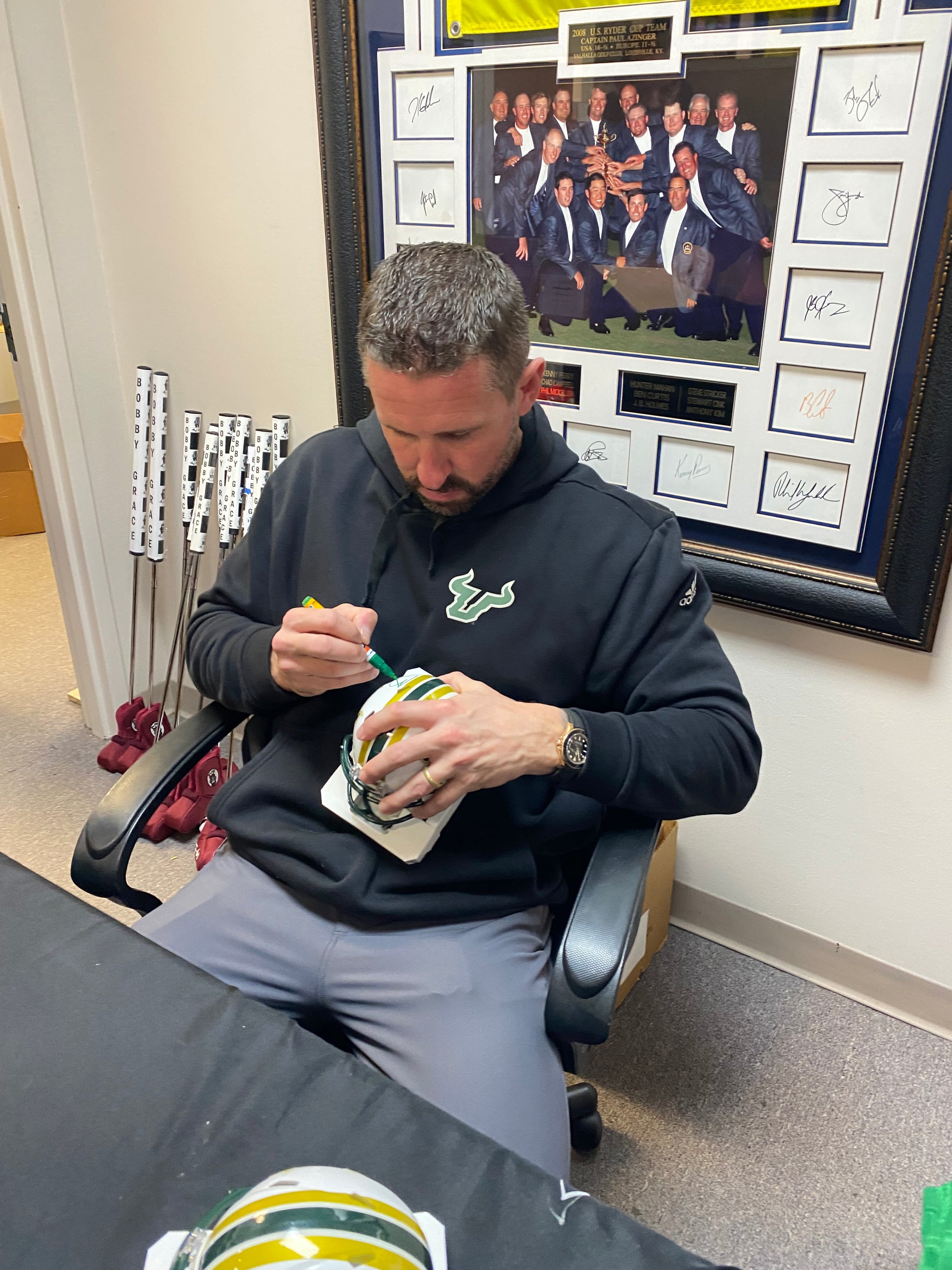 Own a piece of college football history with this Brian Hartline signed University of South Florida USF Bulls speed mini helmet. Authenticated by Beckett Witness certification and freshly signed on February 4, 2026, this collectible captures the legacy of one of USF's most anticipated Coaches. The striking finish showcases the Bulls' iconic branding, making it an eye-catching display piece for any memorabilia collection. Perfect for devoted USF fans, Hartline enthusiasts, or serious collectors seeking authenticated sports memorabilia with documented provenance.