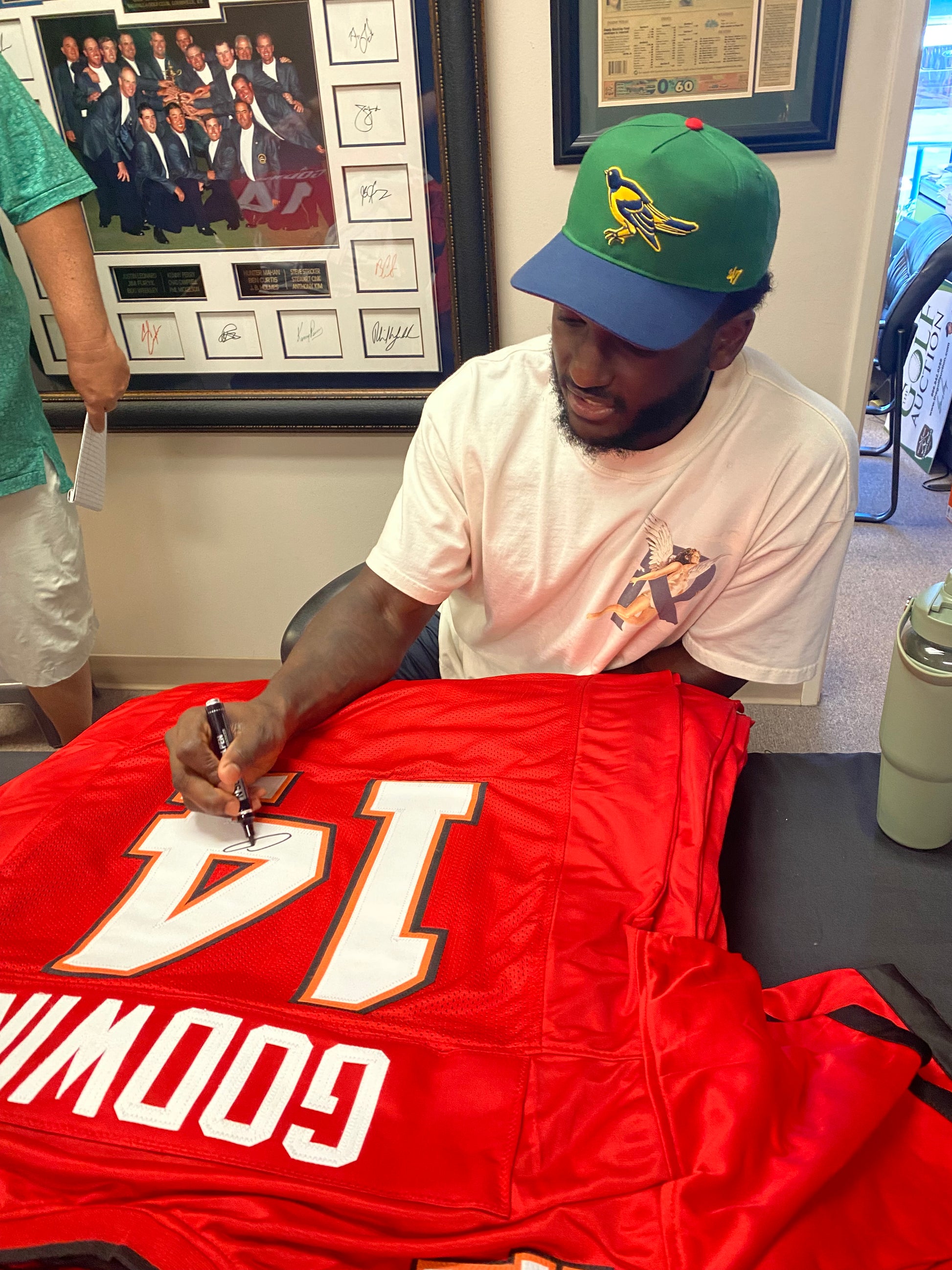 Elevate your fan gear with this White #14 stitched jersey signed by super star receiver Chris Godwin. Certified by Beckett, this jersey is a must-have for any die-hard Buccaneers fan. Show your support and add a touch of flare to your collection.