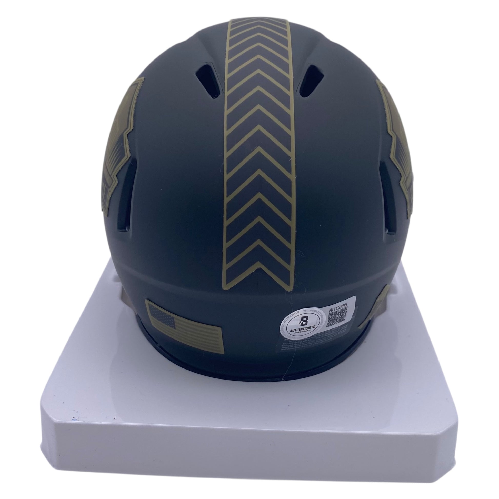 Celebrate a legendary career with this John Lynch signed Hall of Fame Salute To Service Alternate Speed Mini Helmet. Authenticated by Beckett, this collectible honors Lynch’s impact both on and off the field, making it a must-have for any Bucs fan or sports memorabilia collector. Its compact size is perfect for display at home or the office, letting you showcase a piece of football history with confidence. Add a treasured keepsake to your collection that reflects dedication, excellence, and loyalty.