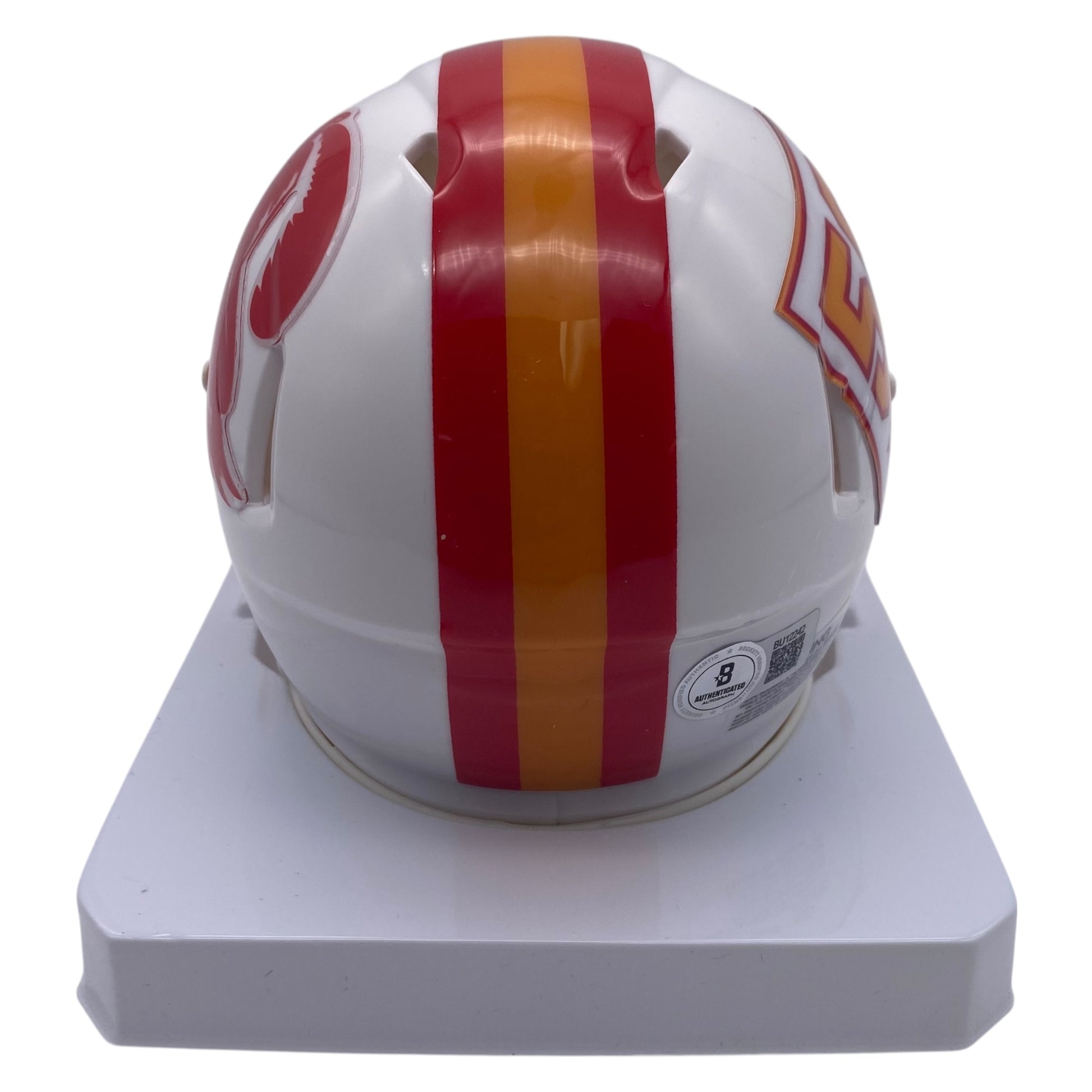 Celebrate Buccaneers history with this Mike Alstott signed 50th Anniversary Alternate Speed Mini Helmet. Beckett certified for authenticity, this collectible captures the spirit of Tampa Bay Bucs football and the legacy of a legendary player. Perfect for fans and collectors seeking a unique piece to showcase pride and honor a true NFL icon.