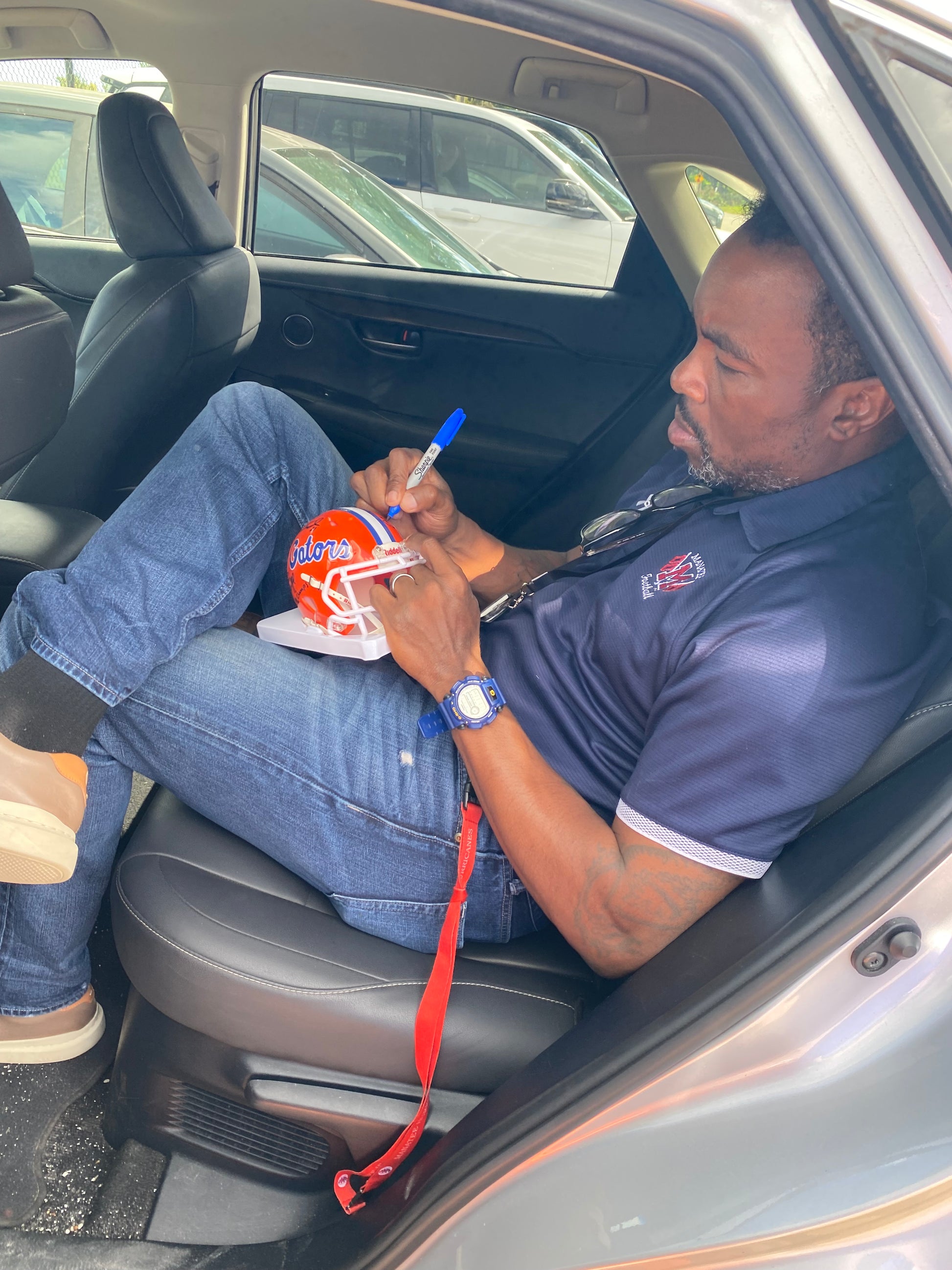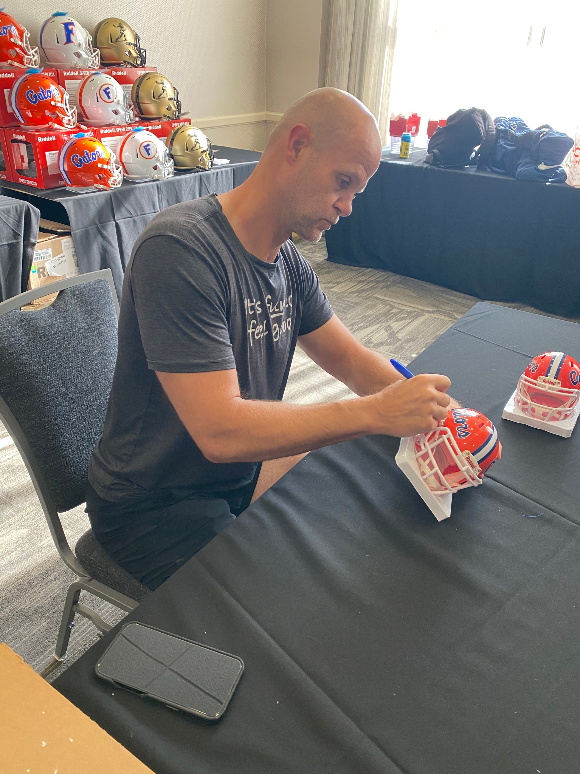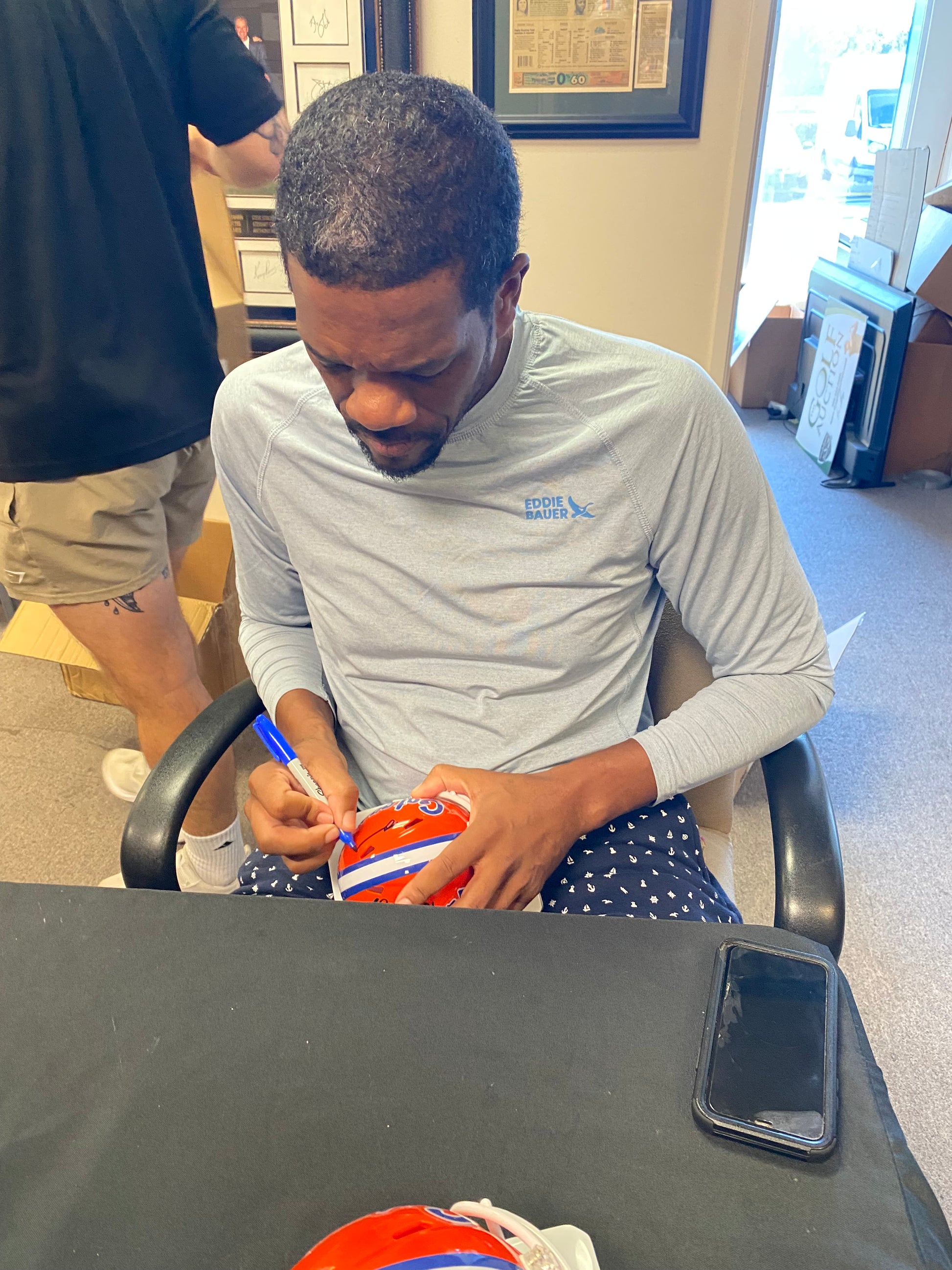 Steve Spurrier Danny Wuerffel Jacquez Green Reidel Anthony Fred Taylor Signed Florida Gators 1996 National Champions Mini Speed Football Helmet