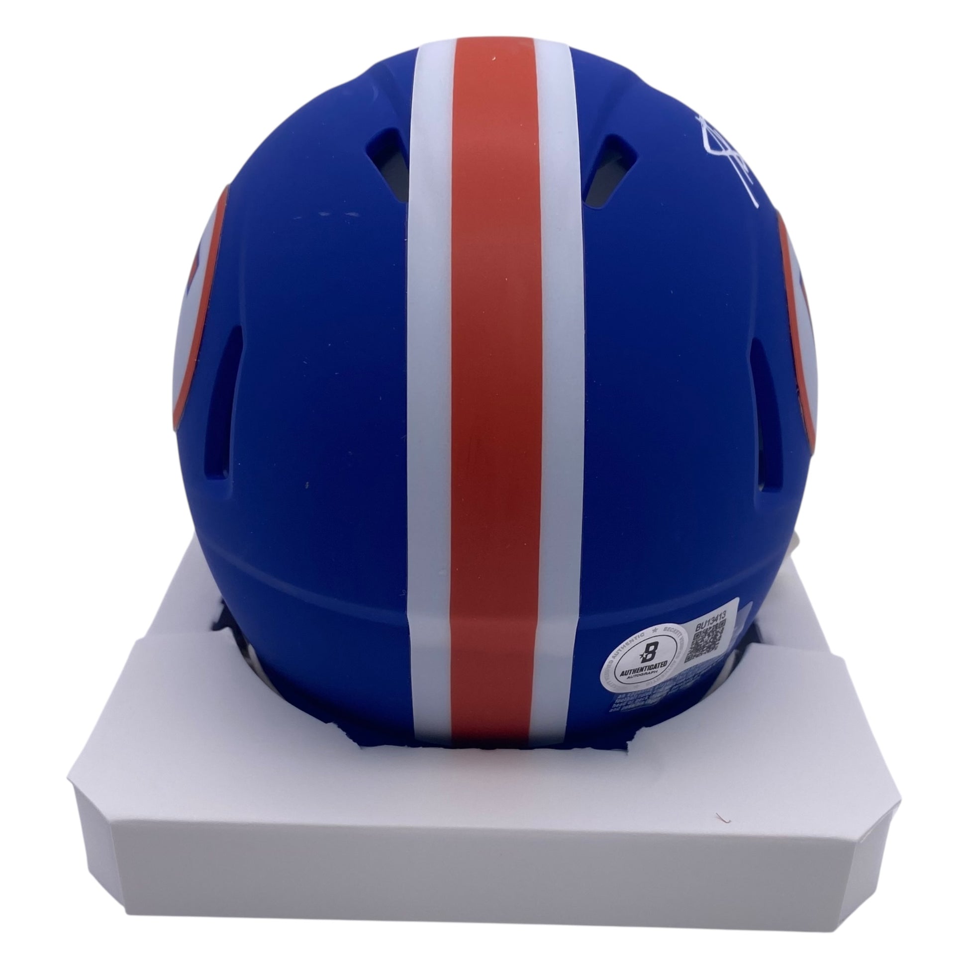 Step into the game with this Steve Spurrier signed Florida Gators mini football helmet. Certified by Beckett, this collectible captures the spirit of a football legend. Its dynamic design and bold signature make it a powerful tribute for any true fan ready to own a piece of Gators history.