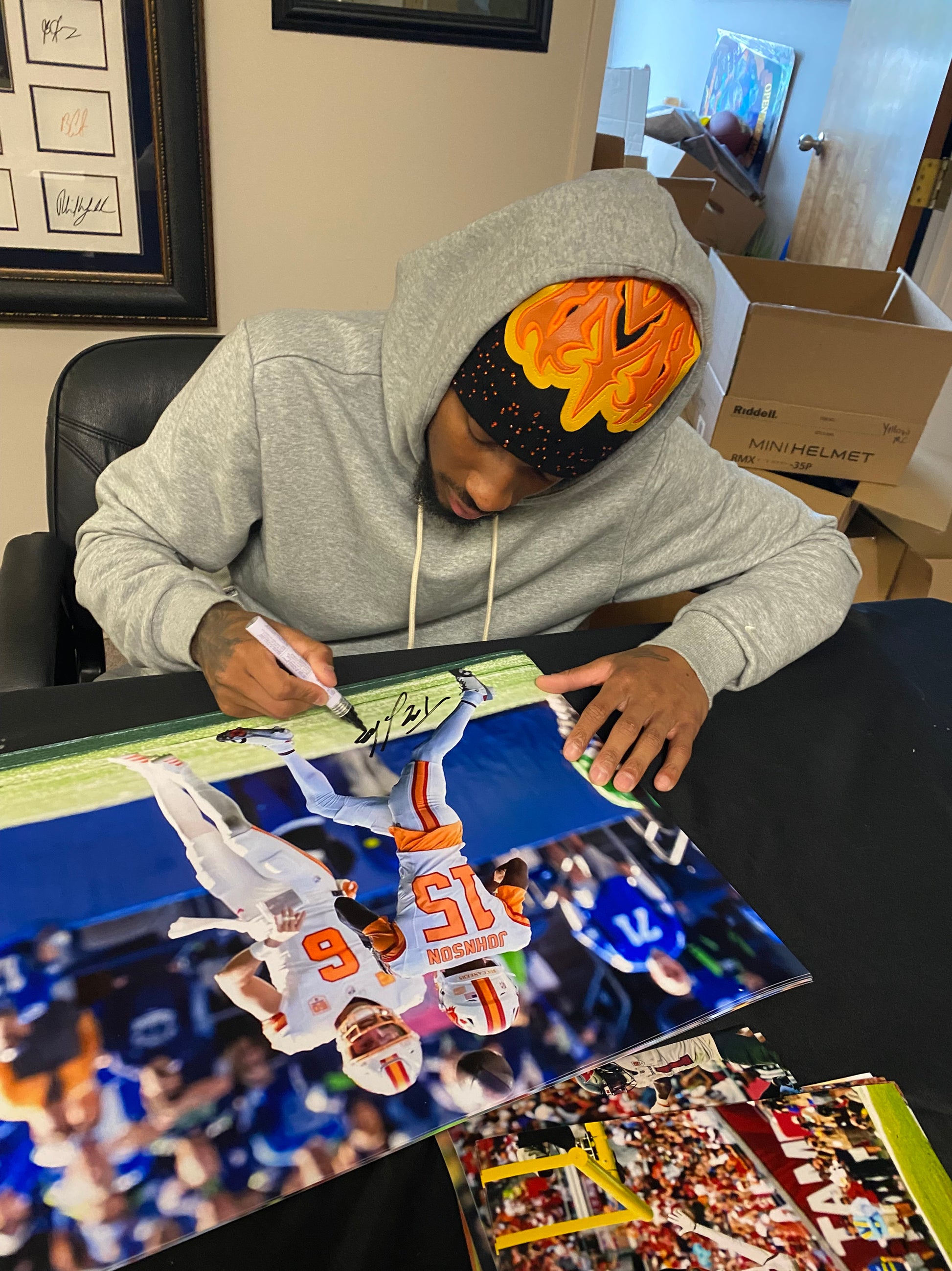 Own a piece of NFL history with this authenticated Tez Johnson signed 16x20 photo from his Tampa Bay Buccaneers era. Each signature is certified by JSA, guaranteeing authenticity and investment-grade quality. Perfect for die-hard fans, collectors, and memorabilia enthusiasts seeking a premium display piece that captures an iconic moment. Frame it in your man cave, office, or collection room—a conversation starter that proves your passion for the game and commitment to genuine collectibles.